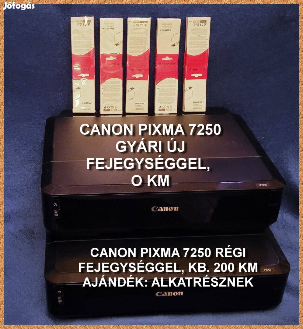 Canon pixma 7250 nyomtató gyári új fejegységgel és 10db Y, 10db M, 10db C, 10db B, 10db Bk eredeti tintapatronnal 40 ezer Ft-ért eladó. Ajándéknak adom a képen láthatót alkatrésznek. Budapesten díjmentesen kiszállítom, telepítem és beüzemelem. Vidékre megegyezés szerint. Postázásról nem lehet szó! Fizetni csak korrekt működés, több színes fénykép kinyomtatása után! Nem fogadok el előre fizetést a Jófogáson át! 70-665-38-56