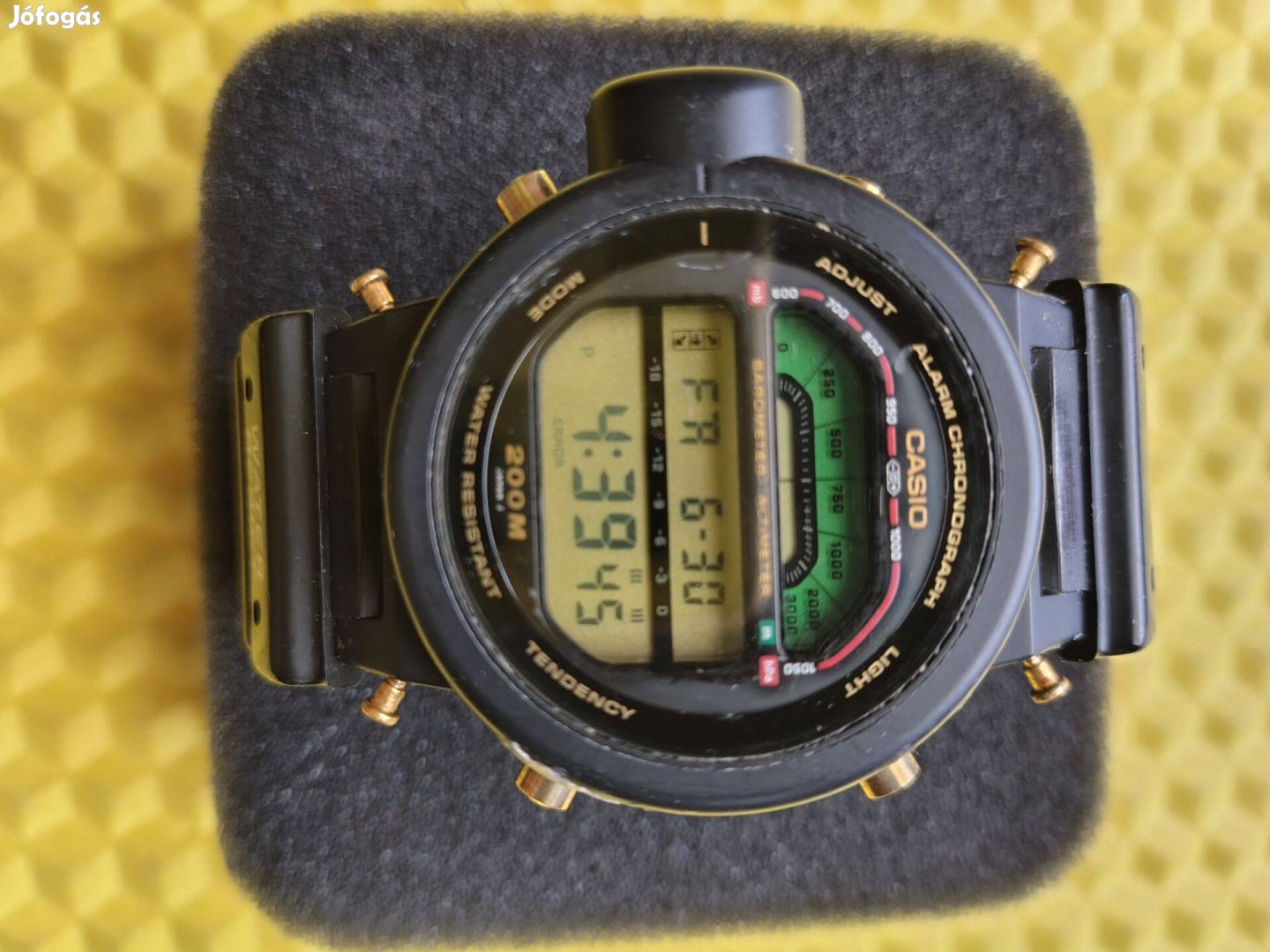Belül darabokban,barométer nem működött mikor hozzám került, ébresztő, világítás,stopper, működött pár éve.Most tettem elemet, órát mutat és világítást, szíj jó állapotban megmaradt,az óra üvege karcmentes.