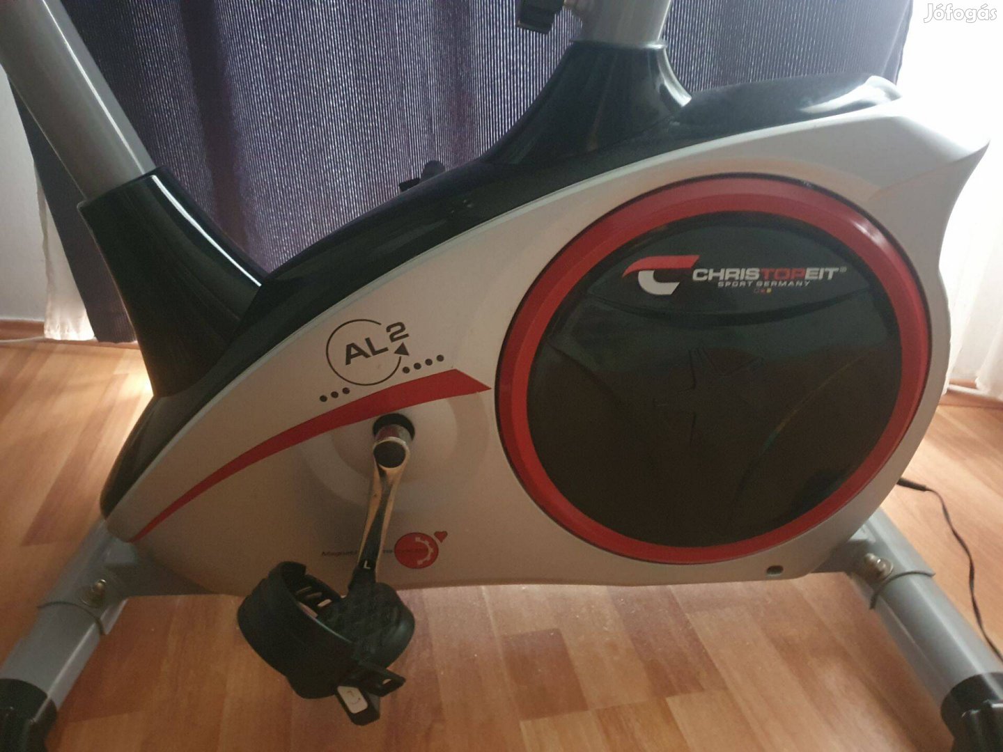Christopeit Sport AL2 ergométeres szobakerékpár egyenesen Németországból. 9kg-os lendítő kereke állandó és megfelelő ellenállást biztosít minden felhasználó számára. Nagy 150Kg-os teherbírással bír! Grafikus digitális LCD kijelzővel rendelkezik, így mindenki számára jól láthatóak az adatok. Konzolján beállíthatjuk az időt, kalóriát és a távolságot egyaránt. Ellenállását 24 fokozatban, computerről szabályozhatjuk, továbbá teljesítményünket 20-400 wattig vezérelhetjük.. Higénikus könnyen tisztítható kapaszkodó, melyen markolatérzékelős pulzusmérő található. 17 db programmal, plusz manuális programmal és fitnesz teszttel rendelkezik, melyek színesebbé és élvezetesebbé teszik edzéseinket. Kényelmes ülés és igényes megjelenés jellemzi.