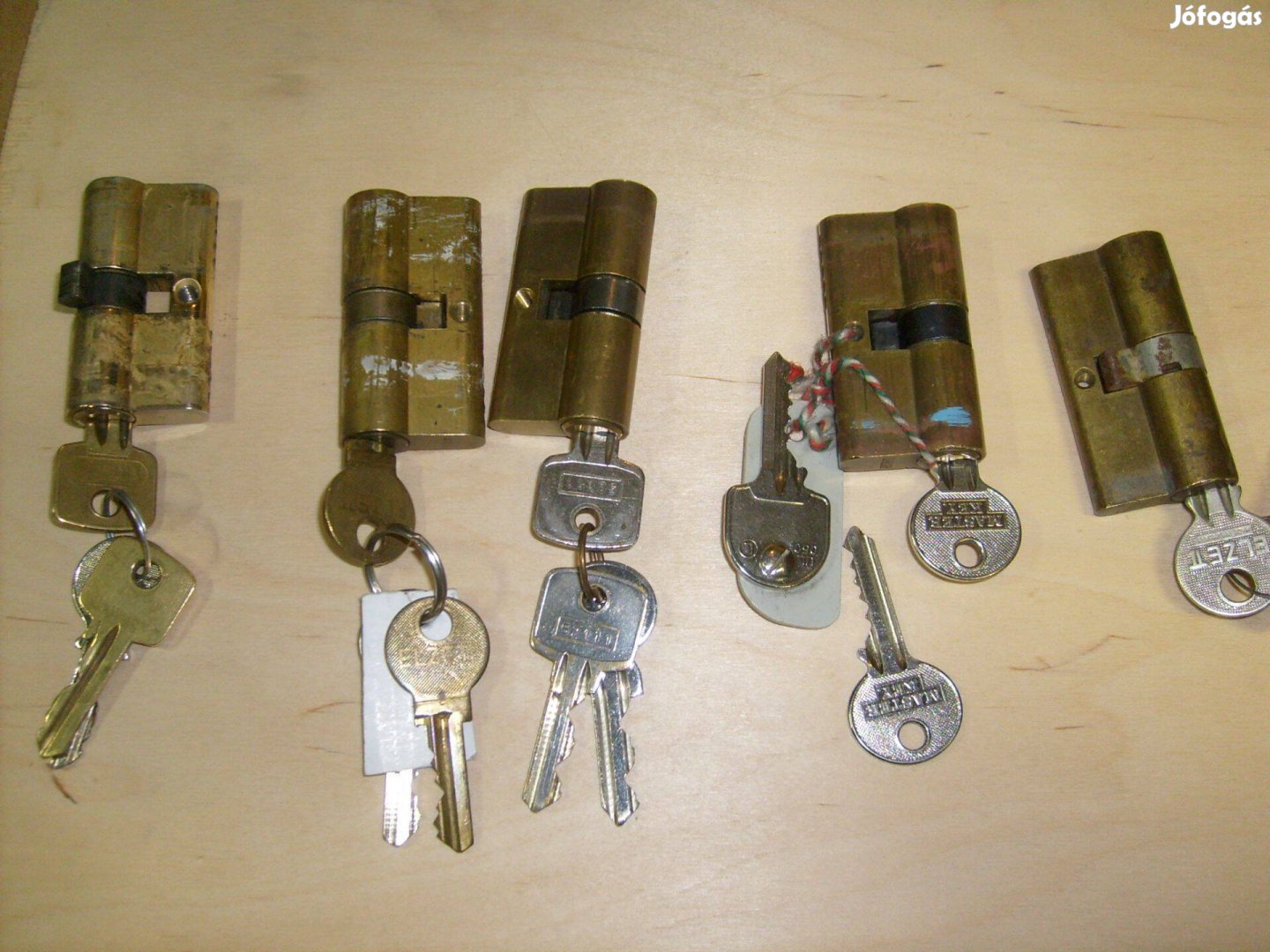 Van : 30 / 30 as réz, 2 il. 3 kulcsal 1 db. 30 / 55 ös réz heveder zárhoz 1 kulcs ' db. vadi új 37/37 Crova ferdén llapolt és 1 db. Crva 30 / 60 Turris hev. zárhoz 3 kulcsal.
