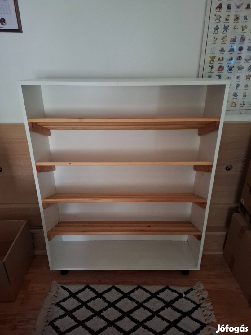 Eladóvá vált cipősszekrény. Méretei: 100cm széles, 27cm mély, 129cm magas.
