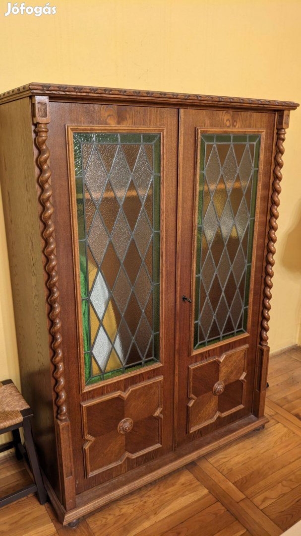 Eladó Colonial barna ólomüveges szekrény, kulccsal.