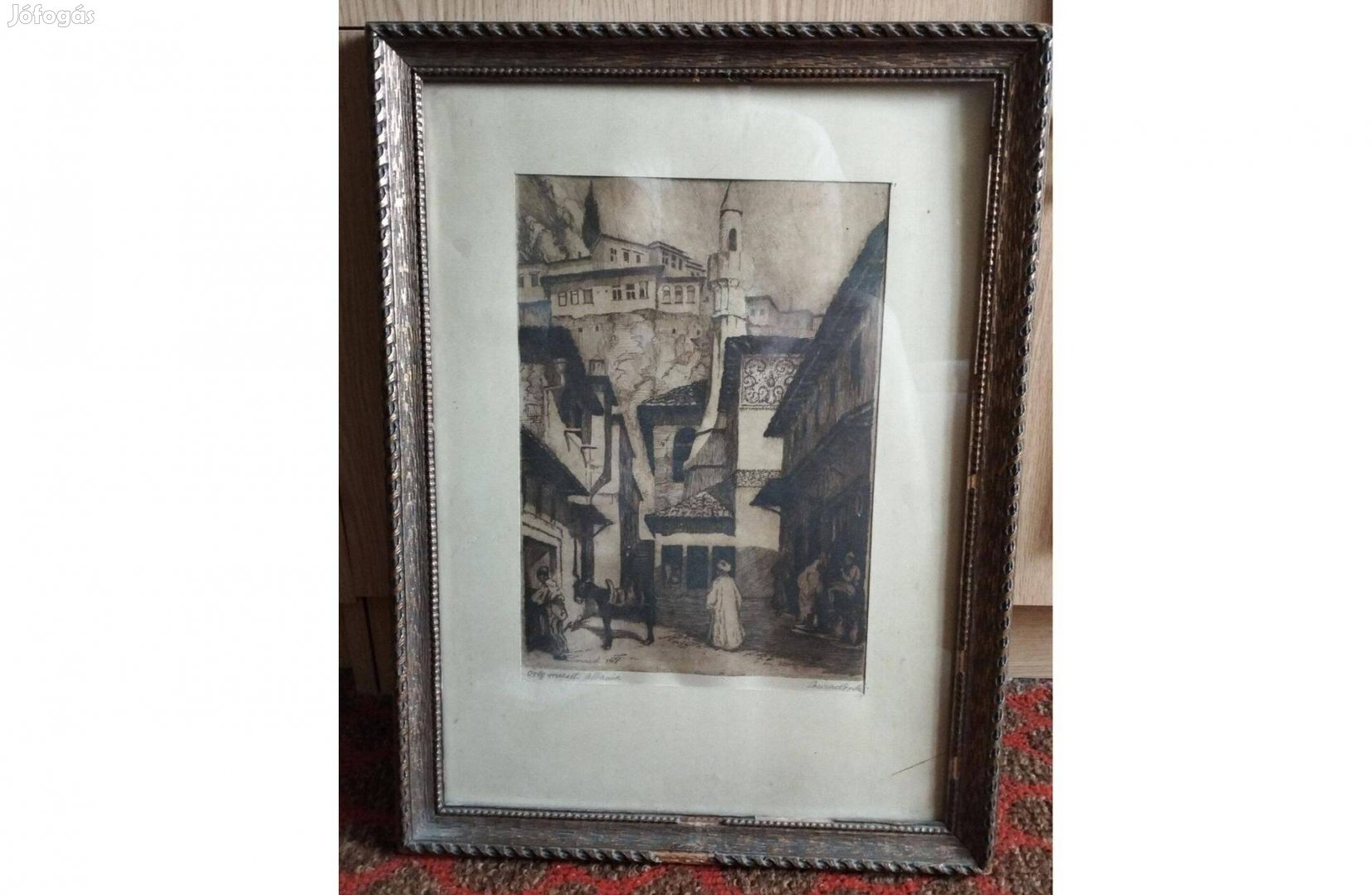 Eladó egy kép, amely Conrad Gyula (18771959) neves magyar grafikus és festő nevéhez köthető. A mű 1928-ban készült, és az "Öreg mecset, Albánia" címet viseli. Conrad Gyula ismert volt balkáni témájú alkotásairól, és több műve a Magyar Nemzeti Galéria gyűjteményében is megtalálható.
