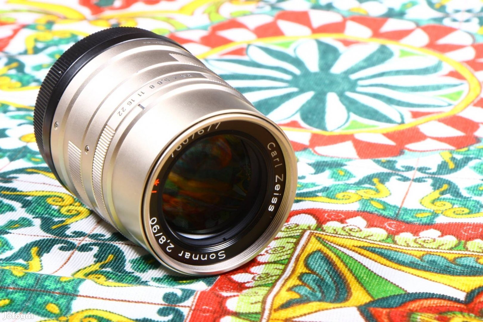 Contax G Sonnar 2.8 90mm Carl Zeiss objektív, újszerű állapotban. Mindene tökéletesen működik, a lencséi gomba és karcmentesek.