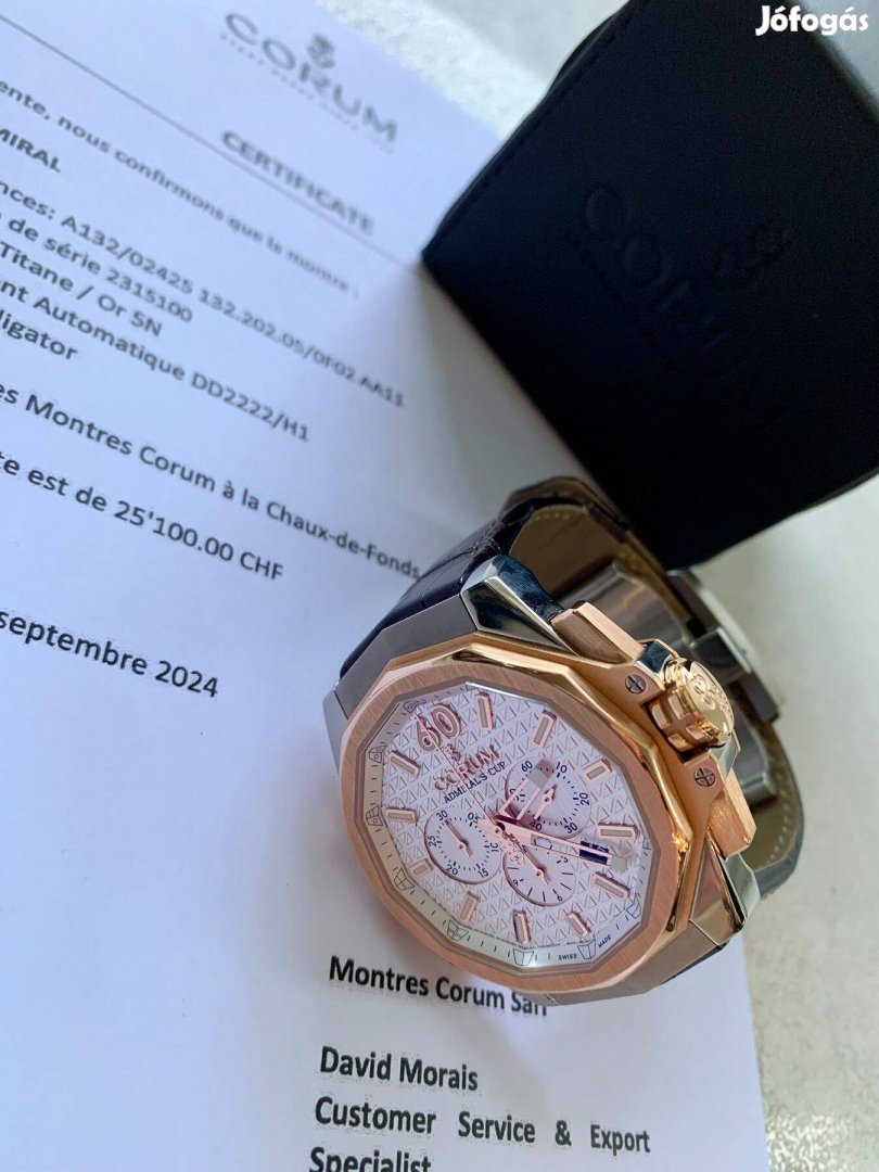 Corum arany-titanium limited edition 50db a világon 45mm és 18k rosegold. North America sorozat ritka és gyönyörű darabja.Aligátor bőrszíjjal és a képeken látható kiváló állapotban, származási papírjaival, dobozában eladó. Frissen szervizelve Watch Corner Budapest! Új ára: 22 ezer Euro.