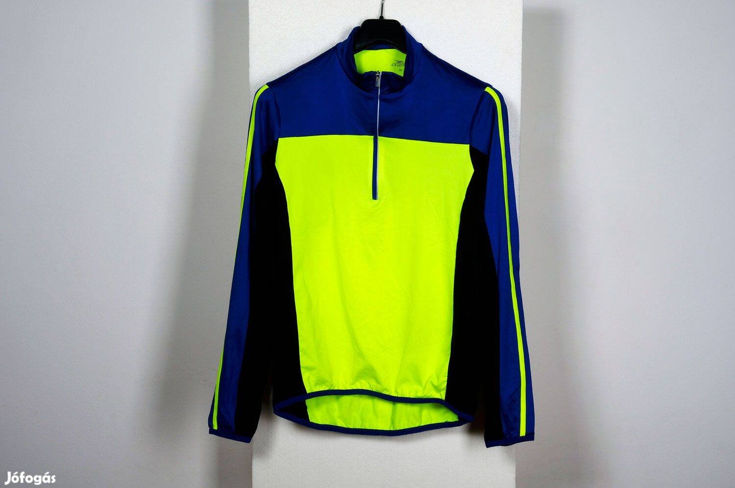 Eladó egy új ALDI-Crane kerékpáros mez, kabát. Kék-neonsárgazöld szín, szélfogó anyag, hátul zsebek + fényvisszaverő csík, alul csúszásgátló betét, profi, kényelmes alapanyag.