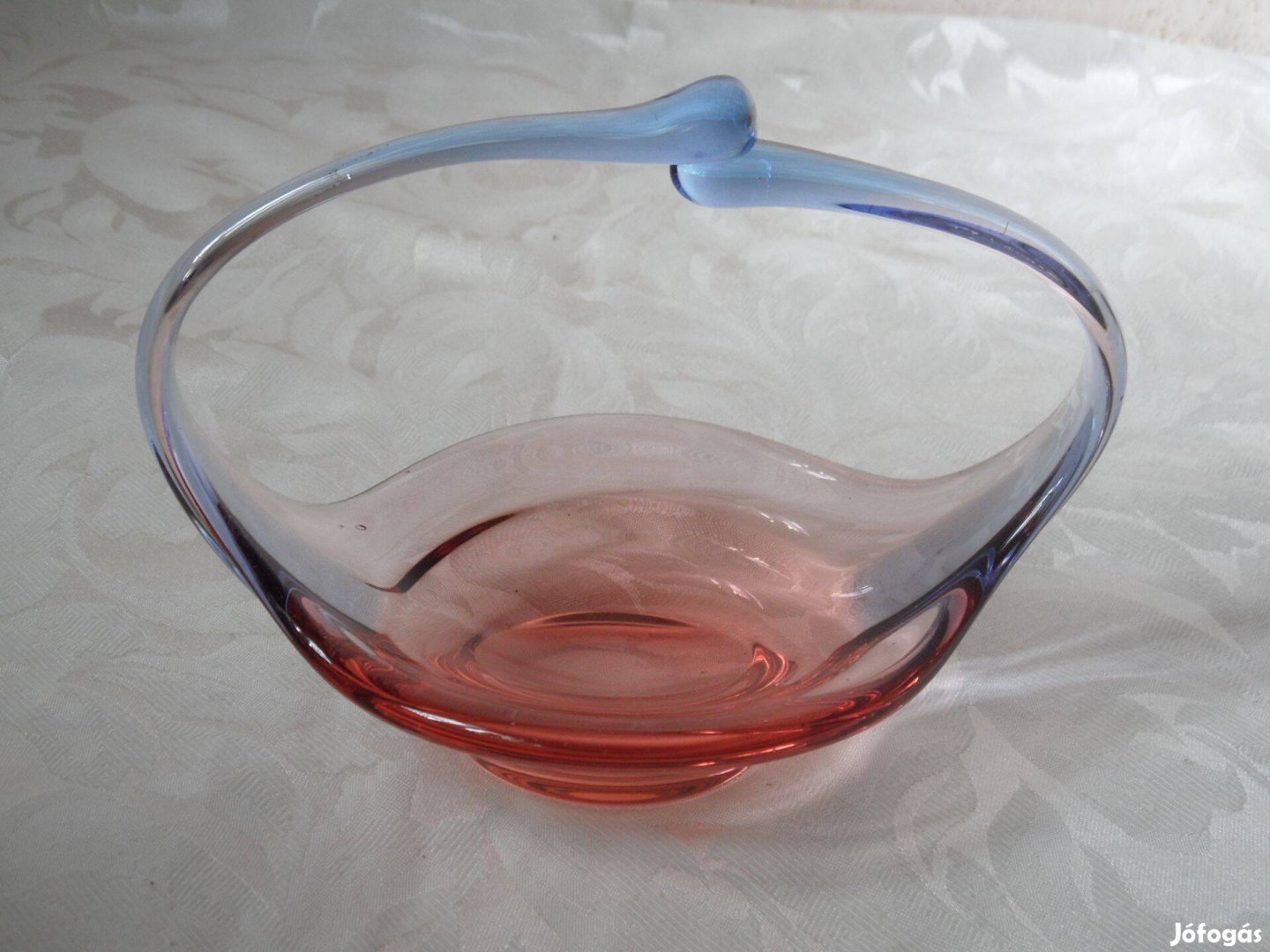 Cseh színes öntött üveg finom vonalú asztalközép, kínáló