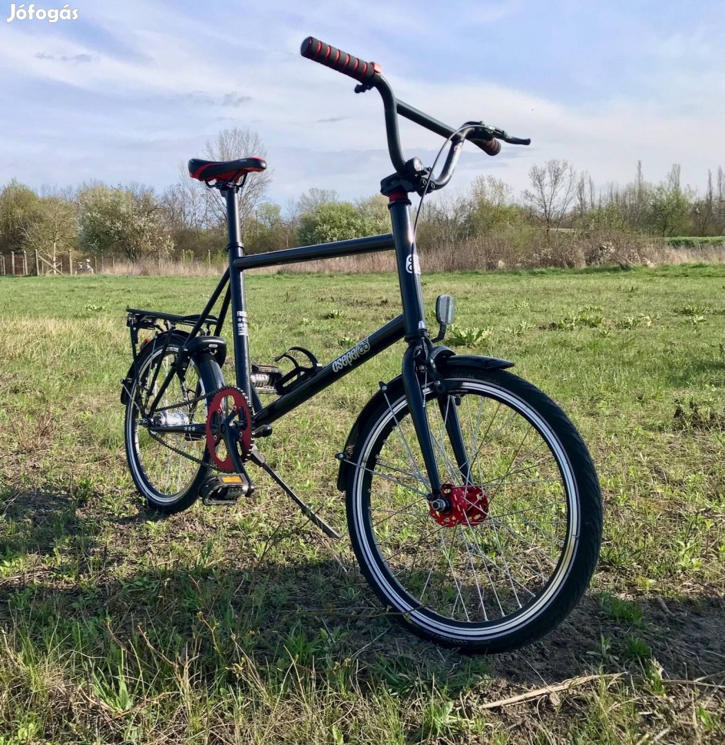 20" kereken guruló felnőtt vázas mini velo, fürge városi masina.Gyors indulás, fordulás jellemzi, méretei miatt elfér panel erkélyen keresztben, (a nagyobbik) liftben vízszintesen. Bár már nem viszi a MÁV ingyen, kényelmesebb vele tömegközlekedni,