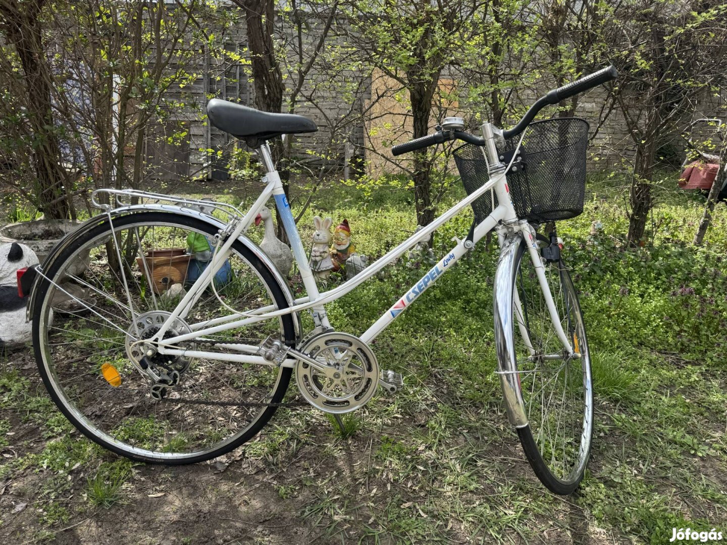 Kifogástalan állapotban lévő Csepel Lady női városi kerékpár eladó! 27 1/4 gyonyörű krómozott ac acél felnikkel, új gumikkal, minden krómozott alkatrésze kifogástalan! Dinamó, lámpa elöl- hátul, fém sárvédők, csomagtartó, csengő, elöl hátul alu favorit fékek, bevásárló kosár, 10 sebességes sachs váltó, alu oldalsztender!