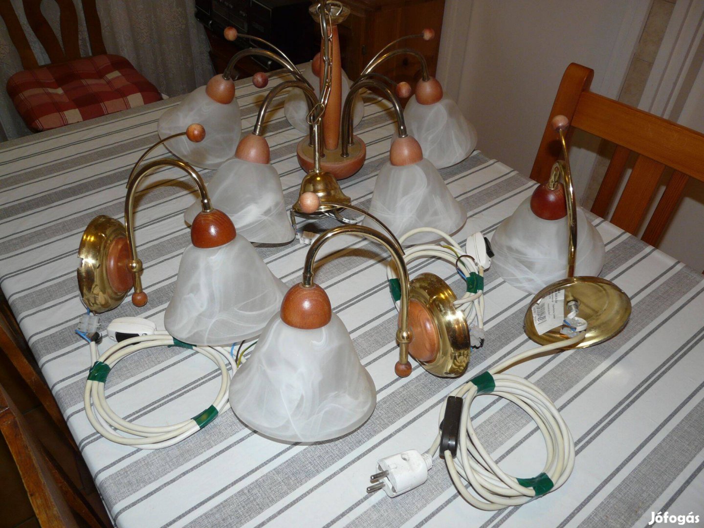 Csillár_5 ágú_Polgári. Eladó a képen látható 5 ágú, polgári csillár. Ár: 15.000 Ft. Két falikar mellé ajándék. Átvehető Budapest 21. kerületében.