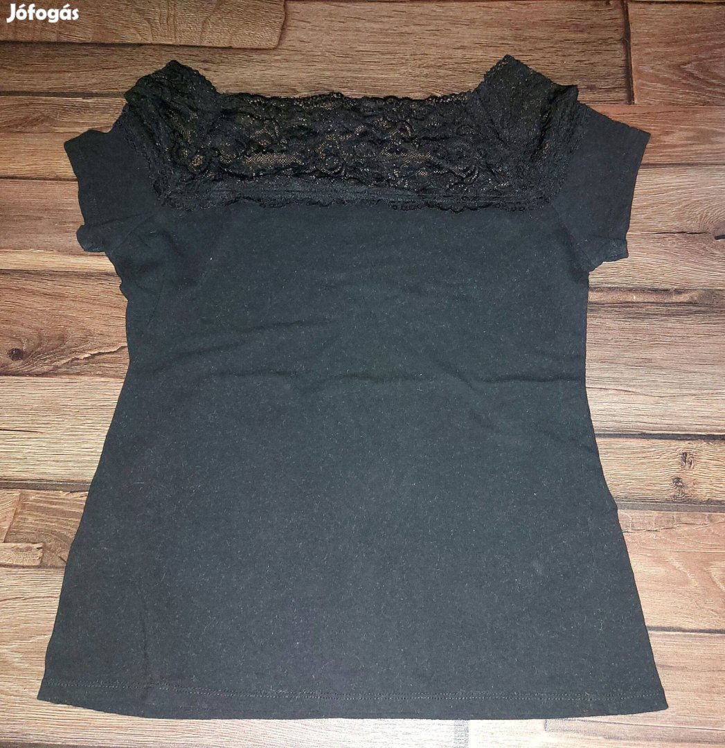 csipkés csónaknyakú fekete felső