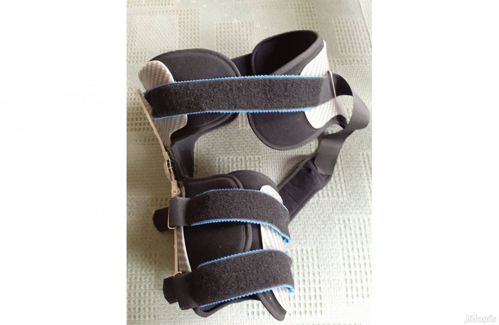 csípőtáji és/vagy combnyak műtétek után a felépülésben komoly segítséget nyújt ez a vastag tépőzárakkal stabilan rögzíthető és a precíz szögbeállítójával (0 90°) is fixálható orvostechnikai eszköz. Külső ívein 23 cm széles kemény, szürke műanyag borítás biztosítja az érintett operált csípőtájék stabilizálását. ami belül viszont puhán párnázott és kényelmes. Az extrém széles (5,5 cm), nagyon erős tépőzárakkal mind a csípőpánt, mind a 21 cm széles, kívül szintén kemény, szürke műanyag borítású, de belül puhán alábélelt combtőpánt (combnyakpánt) a beteg testméretéhez igazíthatóvá teszi a szerkezetet. Csípőrögzítő átmérője a legtágabb állásban 43 cm, körmérete 106 cm, a legszűkebb állásban átmérője 33 cm, körmérete 91 cm. A stabil fémpánttal benne a szögbeállító a csípőrögzítőhöz fixen csatlakozó combnyak / combtőrögzítő méretei: legszélesebb állásban átmérő 27 cm, körméret 82 cm, a legszűkebb állásban átmérő 17 cm, körméret 53 cm. Az állíthatósága miatt minden testméretű beteg számára kiváló, mivel a tépőzárakkal a kívánt testméretre pontosan beigazítható. A külső oldalán futó fémpántjába beépített, a csípő- és combízület hajlásszögének pontos pozicionálására beépített szögbeállítójával (0 90°) mindenkor a kívánt testhelyzetbe rögzíthető a műtött testtájék (csípő vagy comb és a kettő együtt is): teljesen kinyújtott láb (0°), a kívánt kényelmes fekvést biztosító csípő- és combvonal (a kiválasztott szögre beállítva) vagy éppen a fixen ülő testhelyzet (90°) - a műtött testrészek mindig a szükséges helyzetben rögzítetten gyógyulhatnak. A helyes testtartást és a mozgás magabiztosságát is támogatja az utókezelés során. Teljesen tiszta, hibátlan és higiénikus, csak ruházatra kívül felcsatolva volt rövid ideig viselve, testfelülettel, bőrrel soha nem érintkezett. Személyes átvételt javasolnék, de utánvétes postcsomagban is fel tudnám adni.