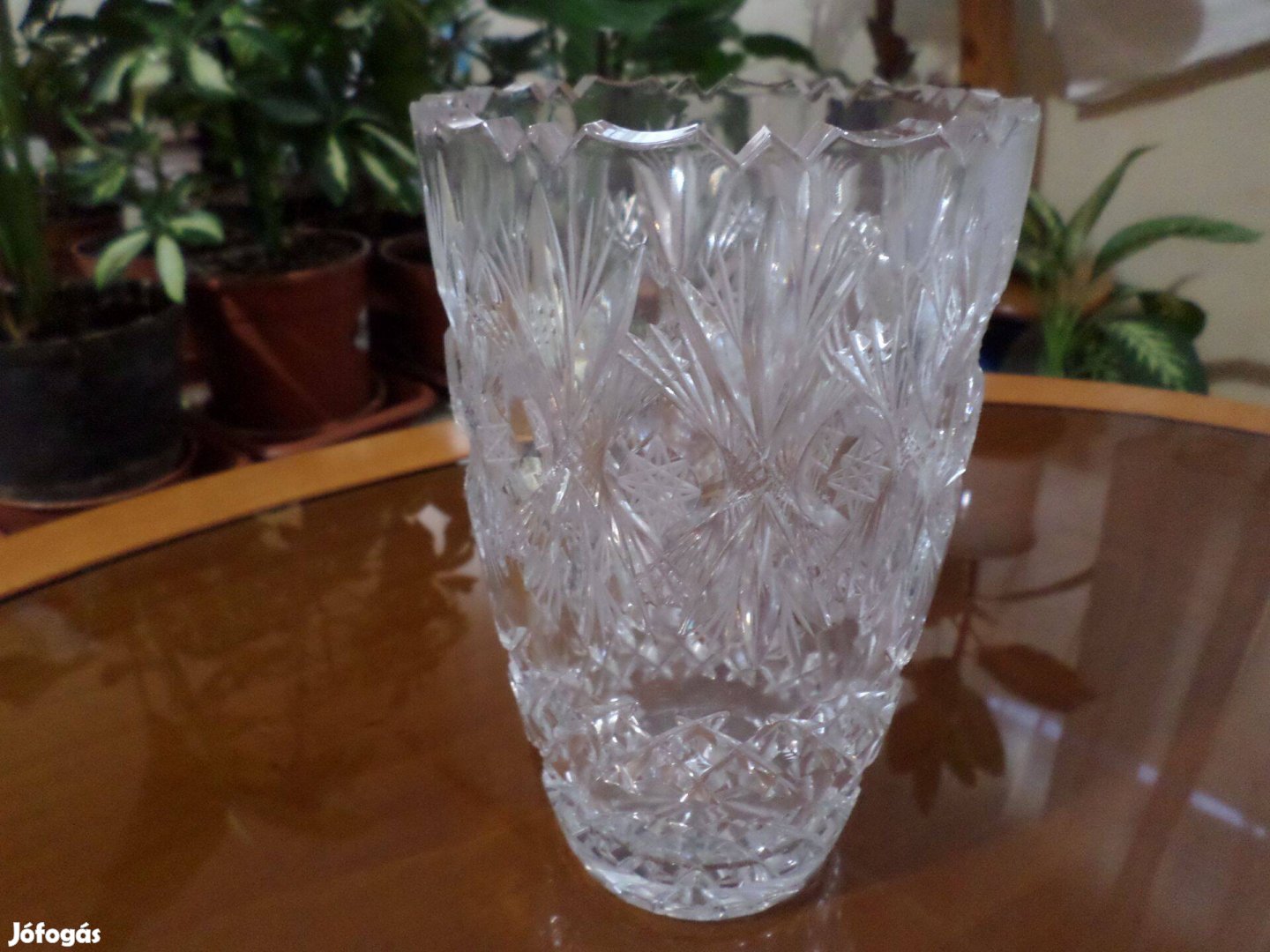 Csiszolt. gyönyörű állapotú kristály üveg váza