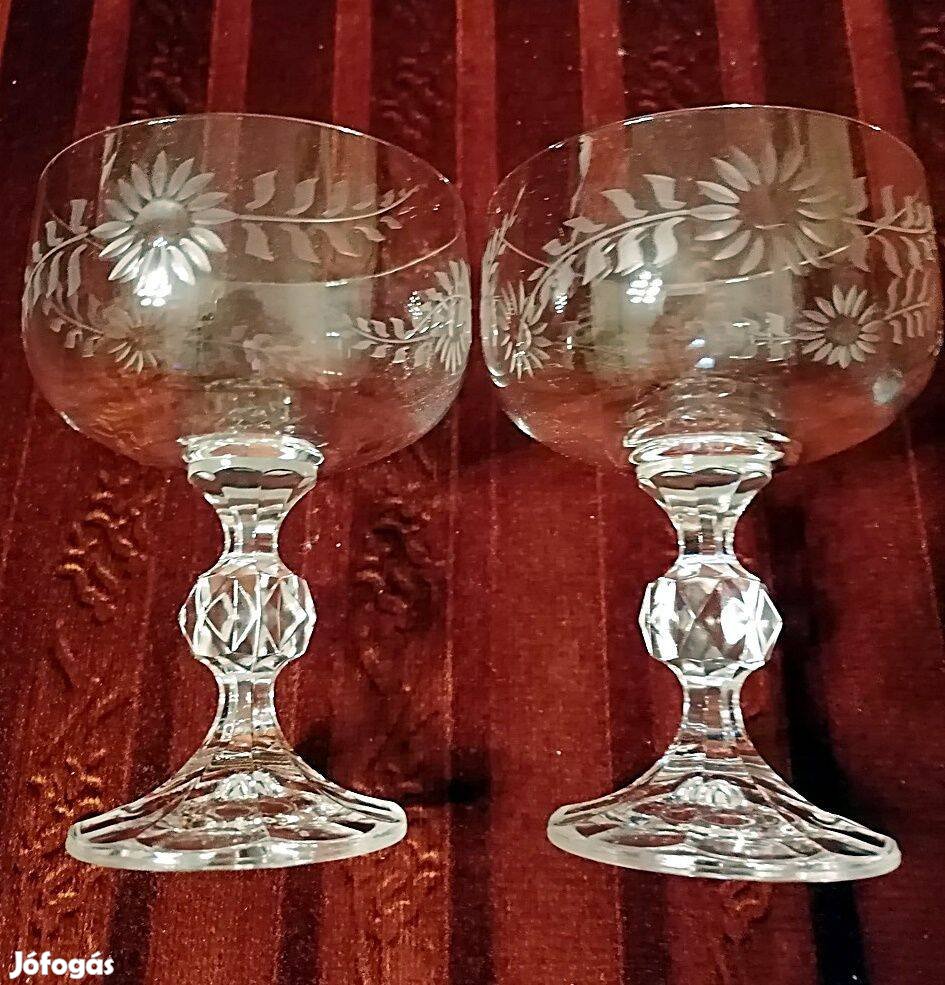 Eladó a képen látható 2 db nagyon szép margaréta mintás csiszolt üveg pezsgős pohár az eredeti dobozában.