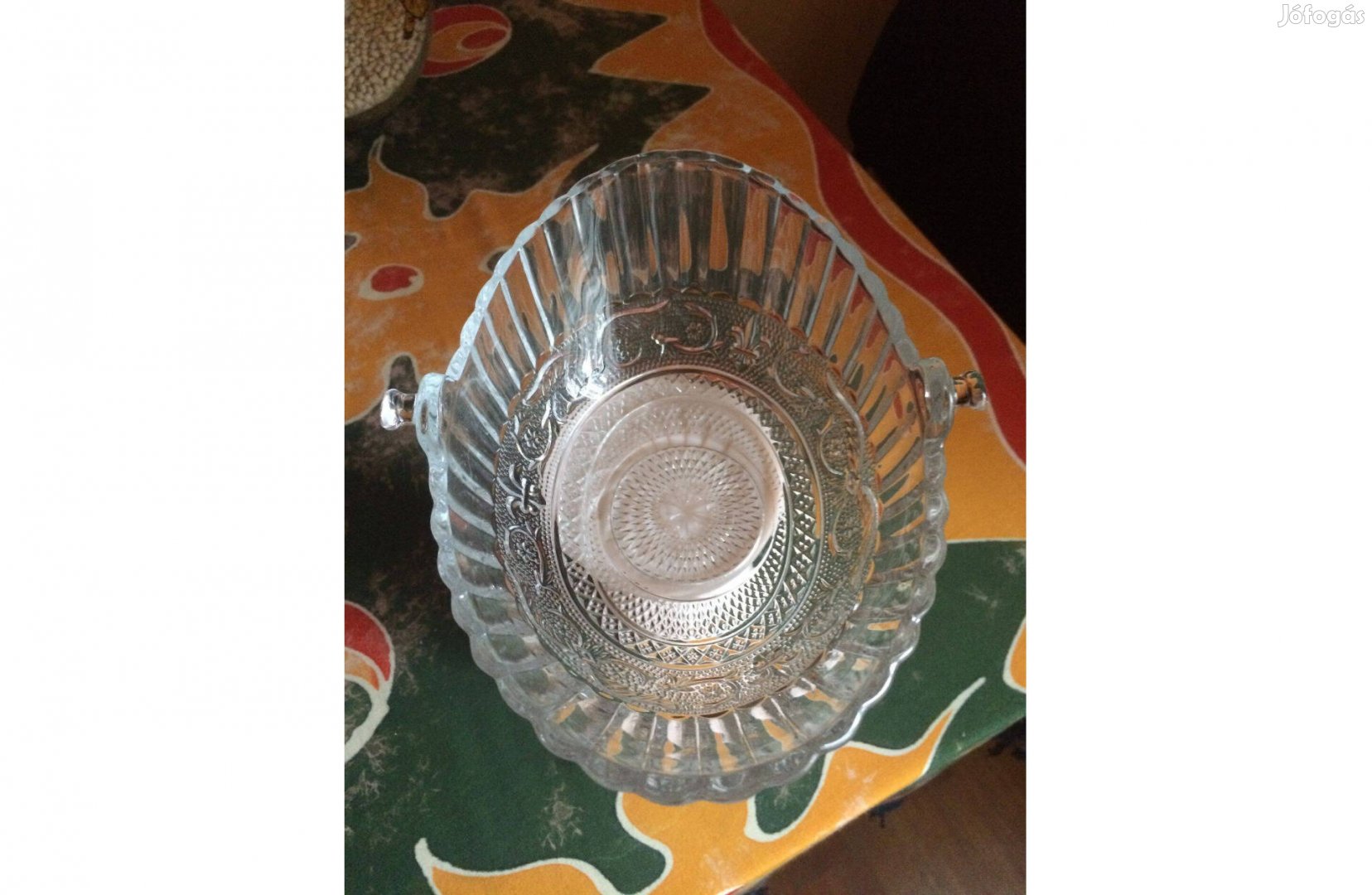 Nagyon szép, ovális üvegtál. Teljesen hibátlan. Elég régi.