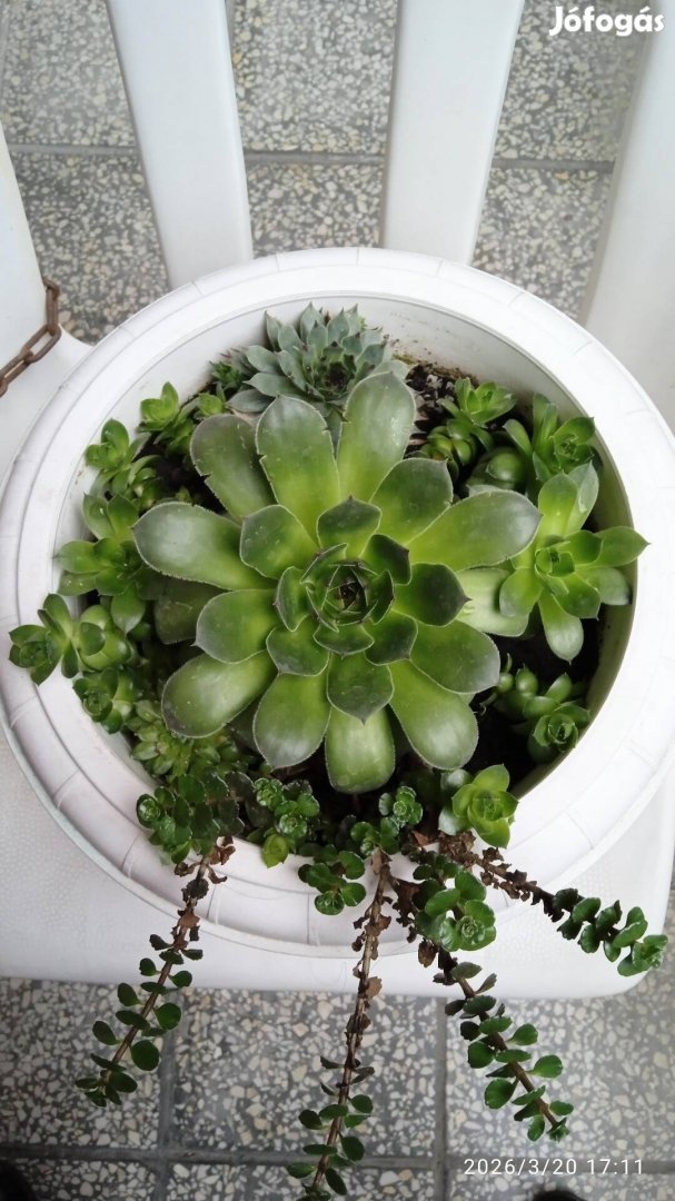 Csodás egész évben viruló sziklakerti örökzöld pozsgások virágtartóban
