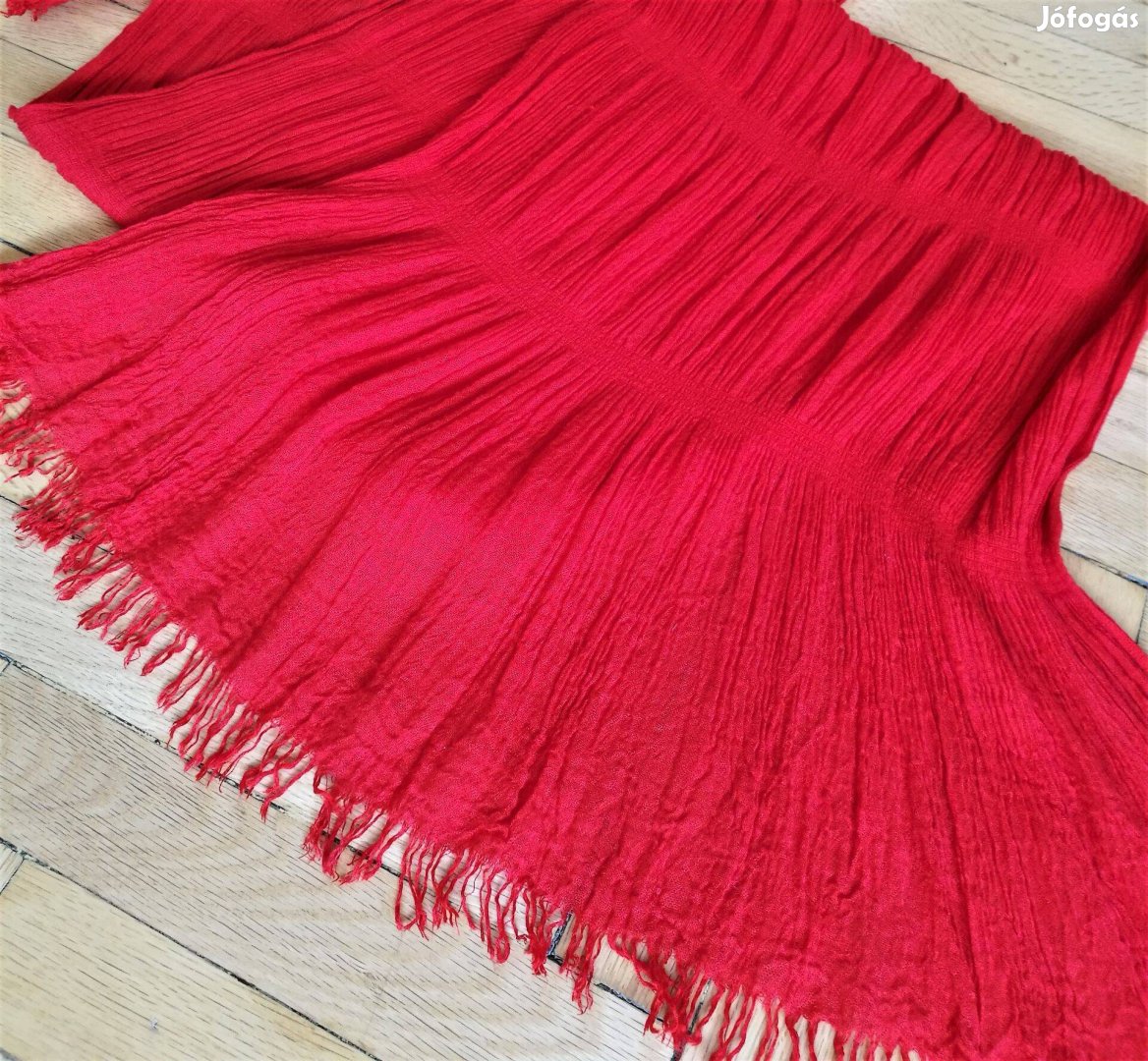 Csodaszép, húzott, rojtos, meggypiros kendő