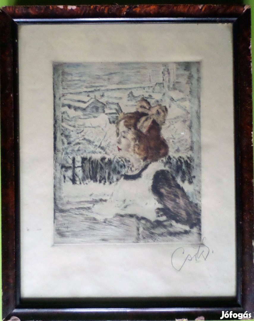 Csók István: Züzü az ablakban (rézkarc)