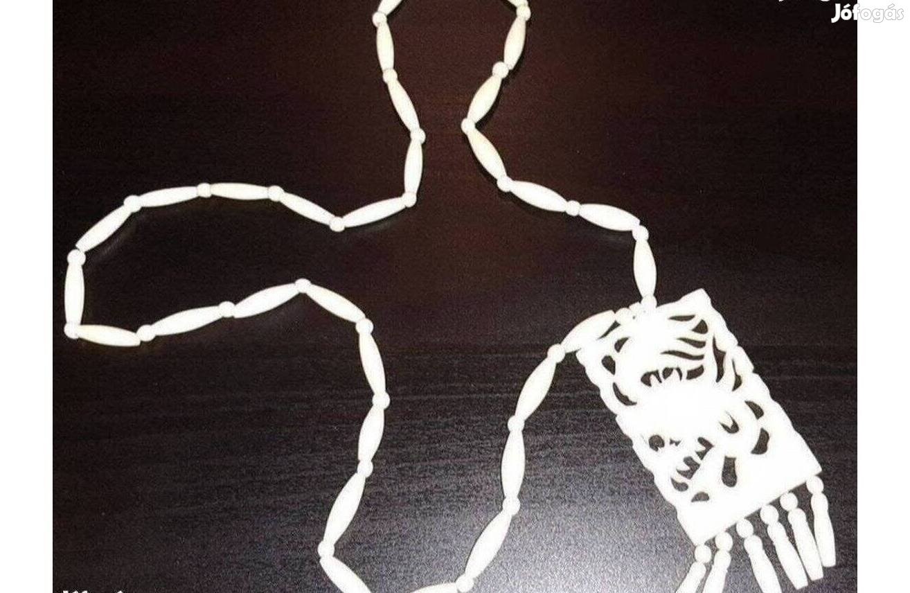 A képen látható csonthatású gyöngyös nyaklánc faragott sárkány motívumos medállal.