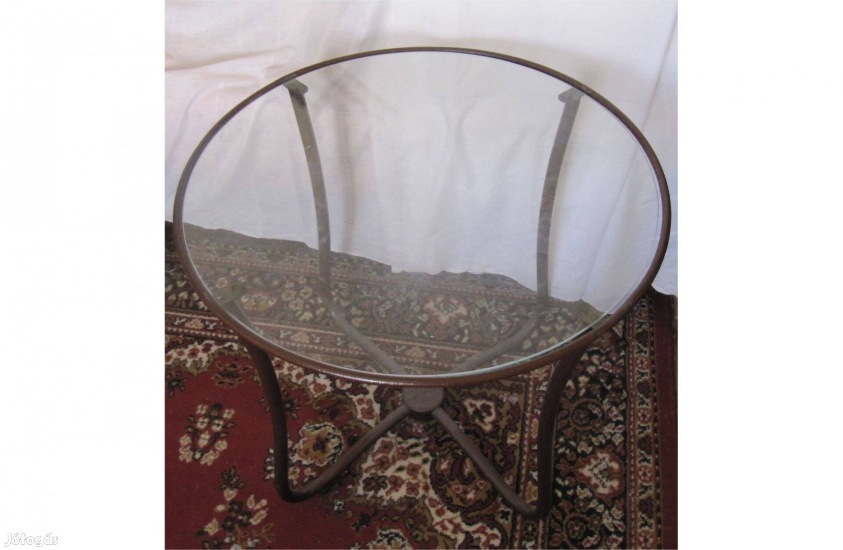 Csővázas krómozott, rozsdabarna, Körüveglapos asztal eredeti