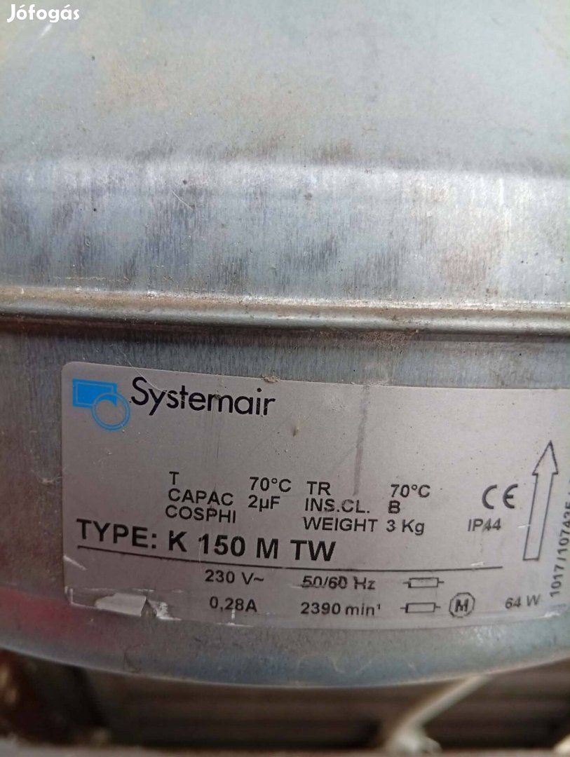 Eladó egy csőventilátor 150 mm átmérőjű. Megtekinthető telefonon előre egyeztetett helyszínen és időpontban Budapesten a XVI. kerületben. Műszaki adatok: