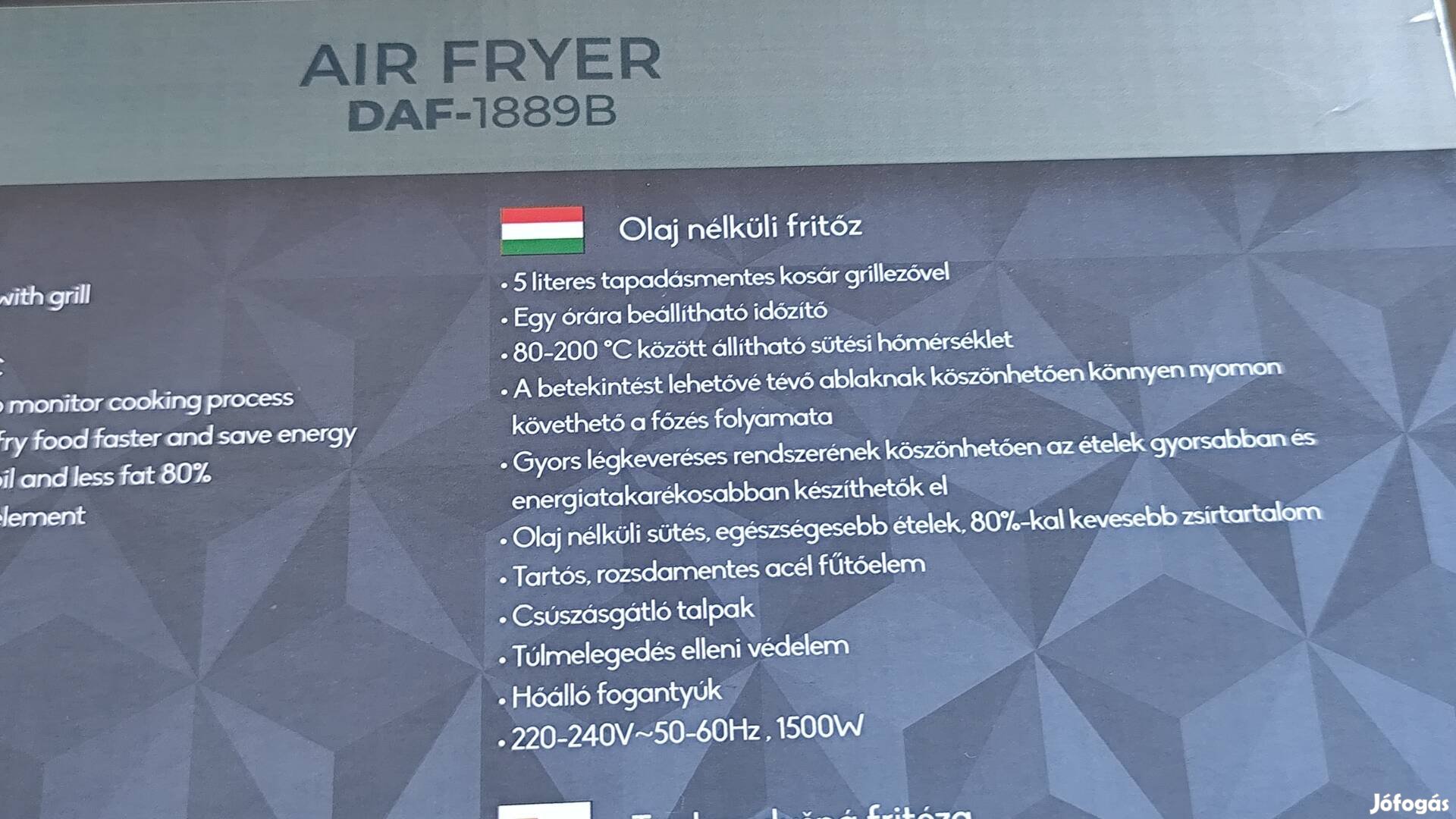 Eldaó egy új, bontatlan, csomagolássérült Daewoo DAF-1889B Air Fryer. Szállítás megoldható.