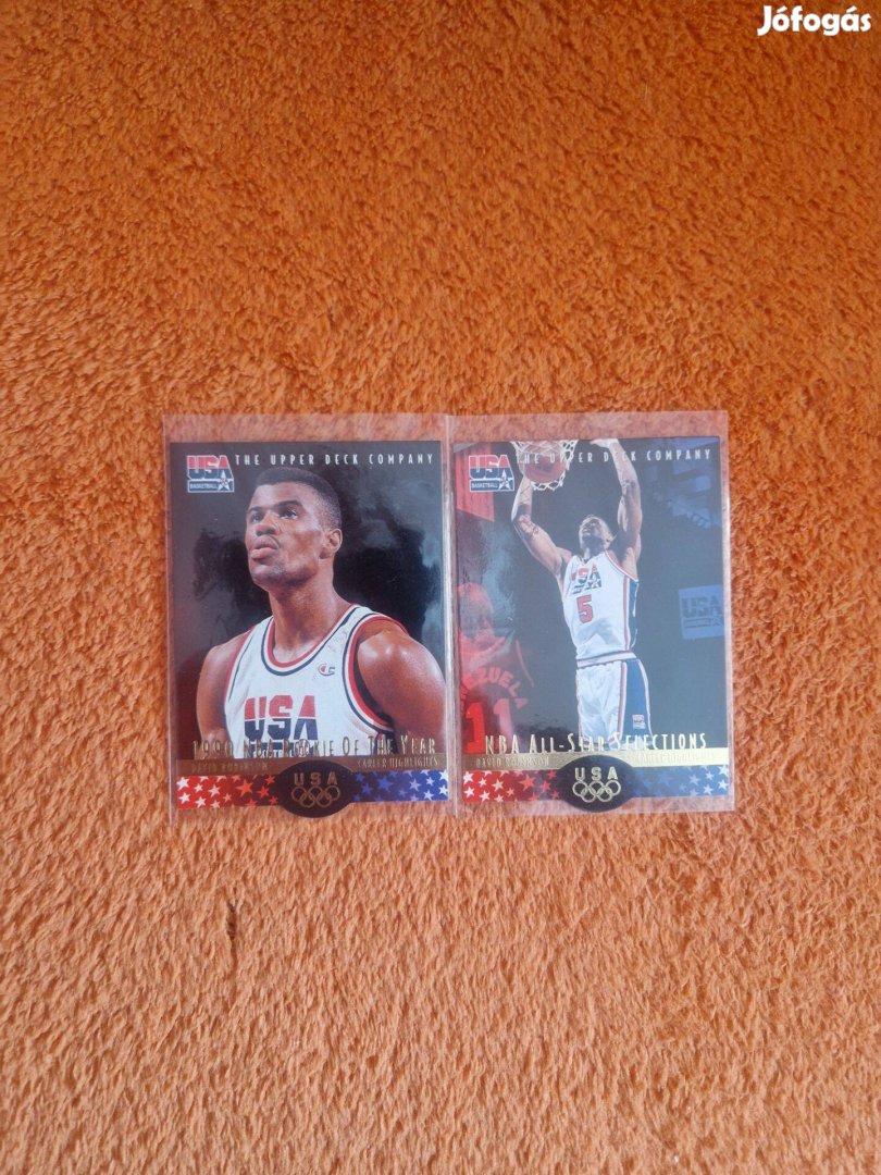Eladó 2db David Robinson Upper Deck 1995-96 USA Team kosaras kártya, hibátlan állapotban, budapesti személyes átadással, Revolutra utalás esetén postázom is Foxpost-tal.
