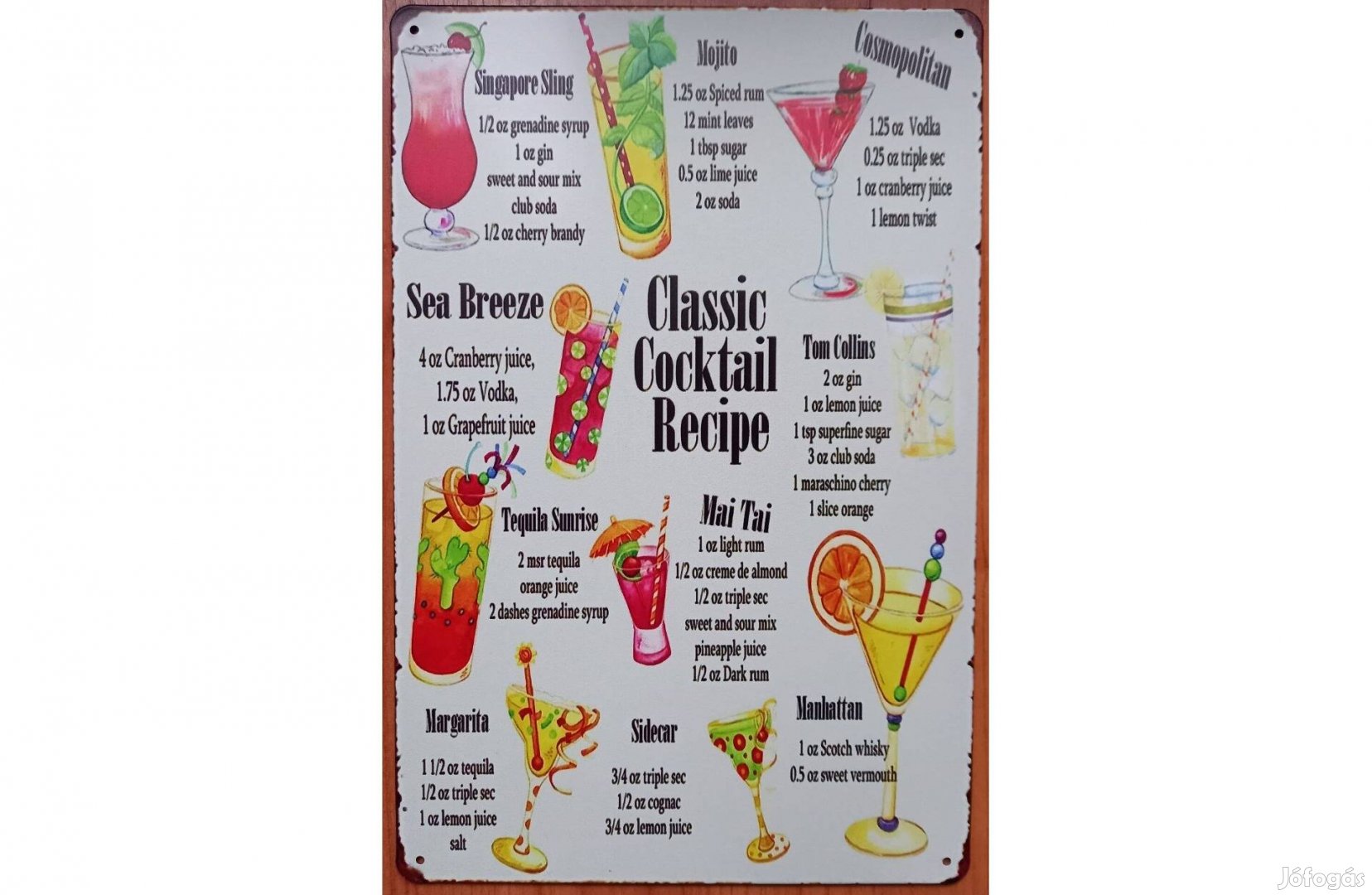 Dekorációs fém tábla (Klasszikus Koktél Receptek)