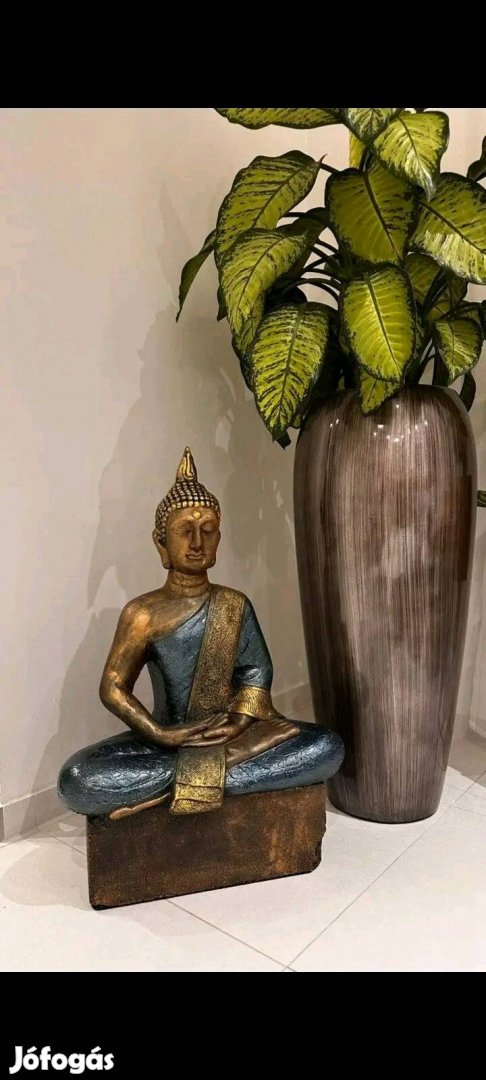 Eladó dekorációs célra egy Buddha szobor. Letisztult megjelenésű, nyugodt hangulatot sugároz.