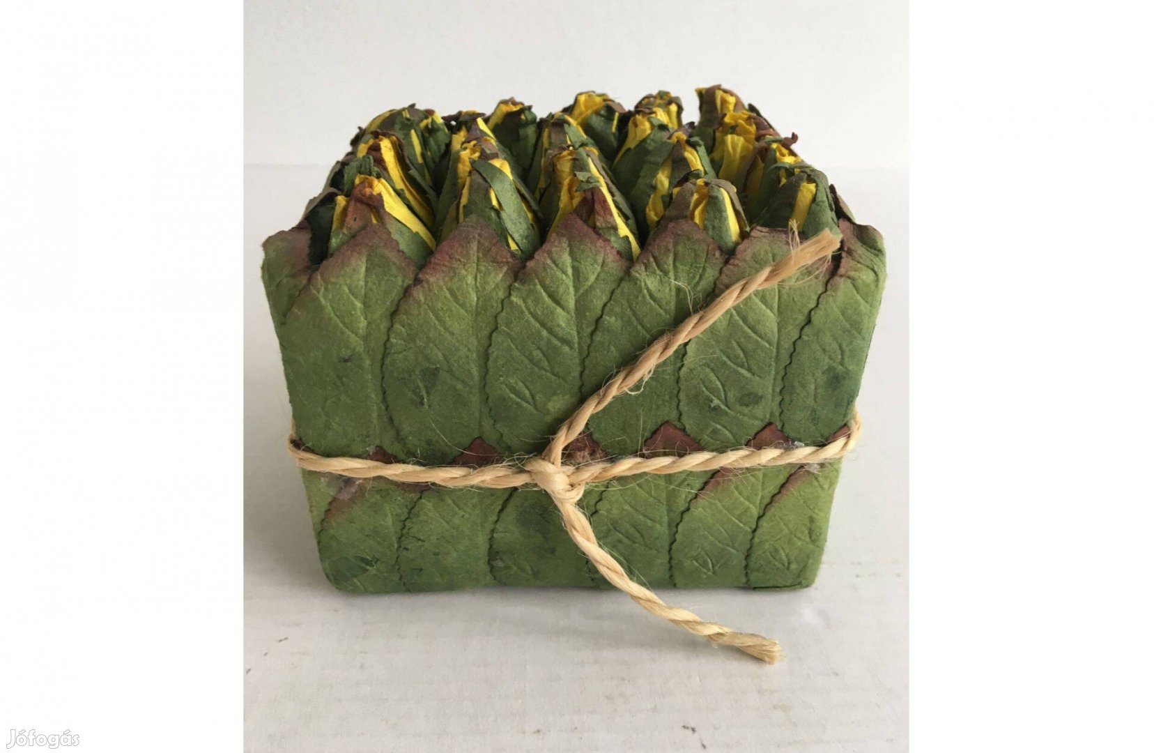 Eladó hibátlan állapotban lévő, papírból természetes anyagok felhasználásával készült, dekoratív sárga rózsa csokor asztali dísz, dekoráció. Akár ajándéknak is tökéletes.