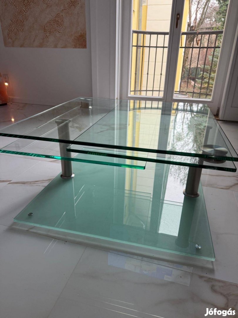 100x100 cm edzett üveg asztal, 3 részre nyitható