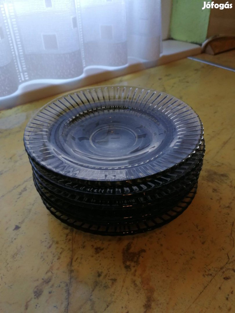 6db Új Füstszínű Desszertes, tányérók, Eladók!! Személyes, átvétellel, Budapest, 3ker.