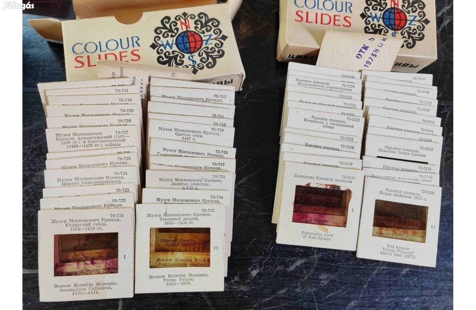 Régi Orosz, szovjet színes diasorozat 2 x24 db., Kreml és Vörös tér, eredeti dobozukban