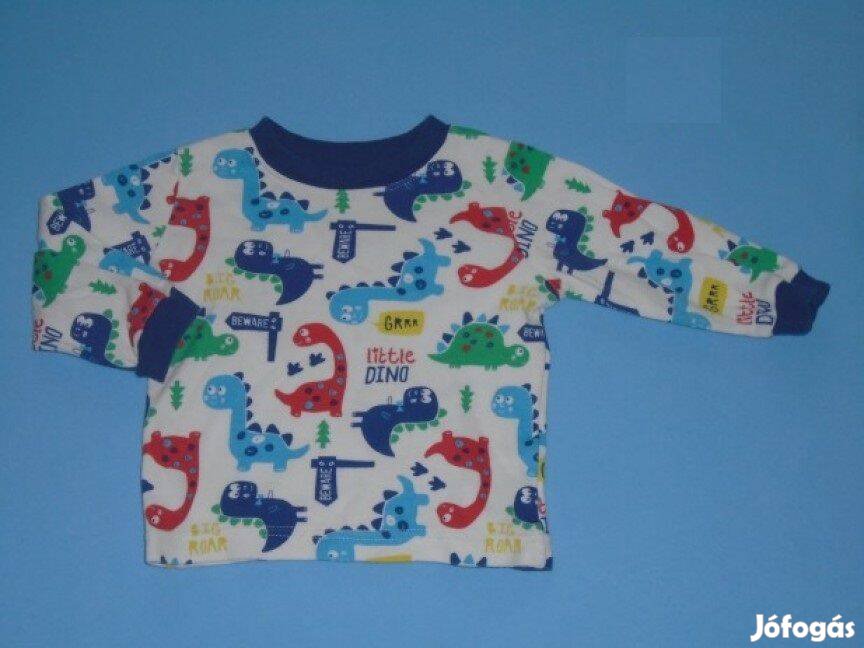 Dinó mintás fehér hosszú ujjú felső 6-9 hó (méret 74)