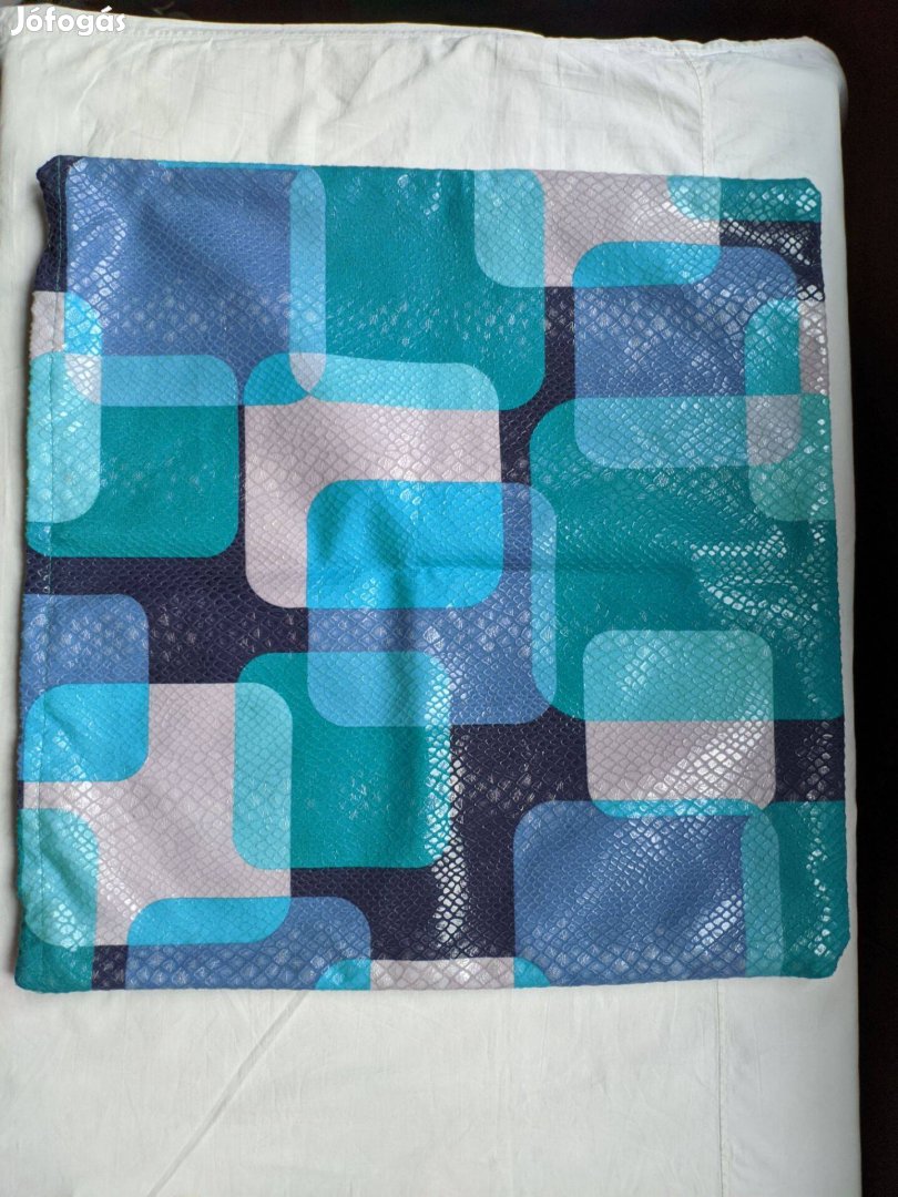 Krokodil hatású, kék színes kocska mintás díszpárna húzat.