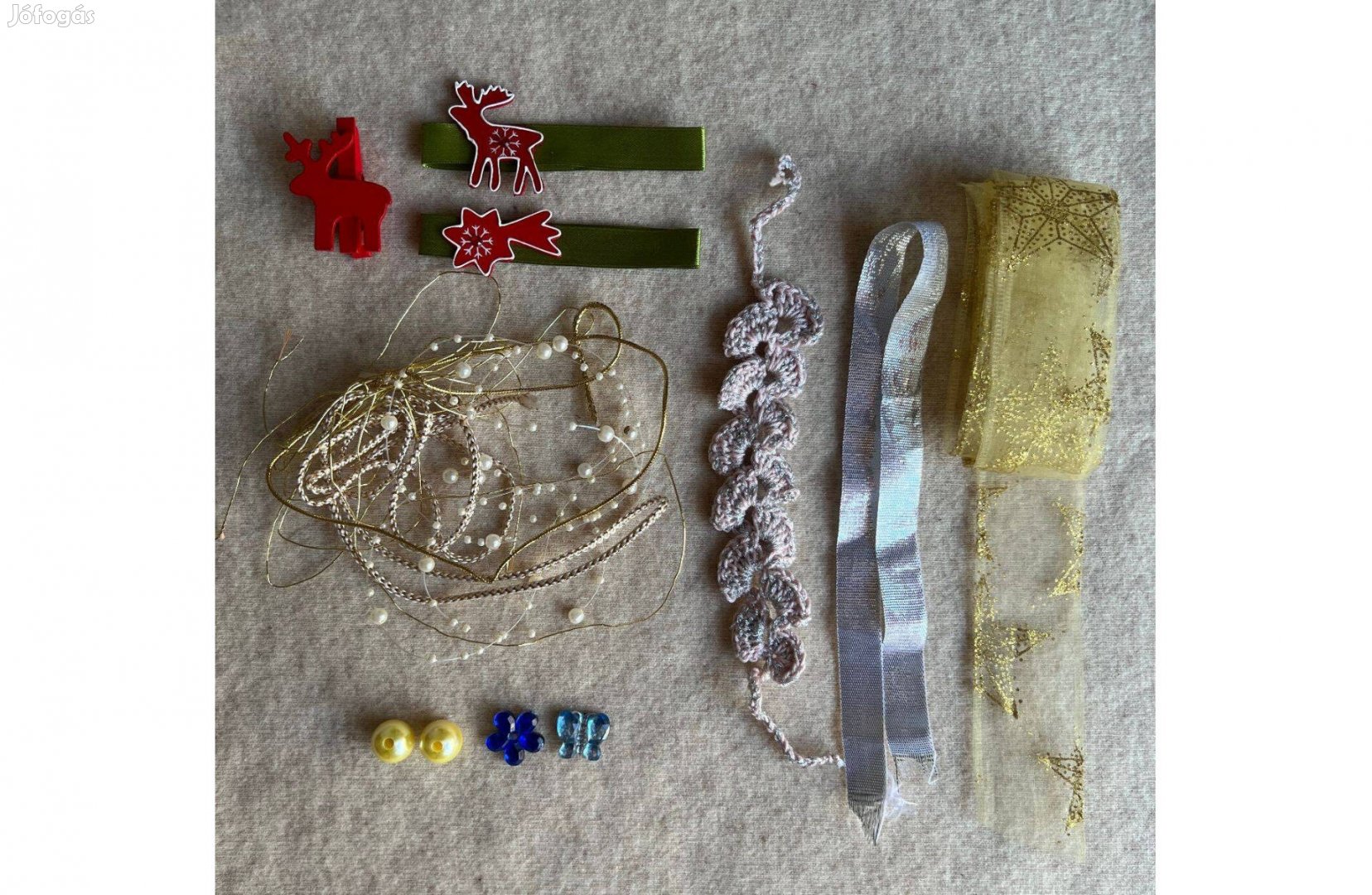 Új, kiváló állapotban lévő díszek, szalagok - ünnepi, karácsonyi kreatív csomag eladó.