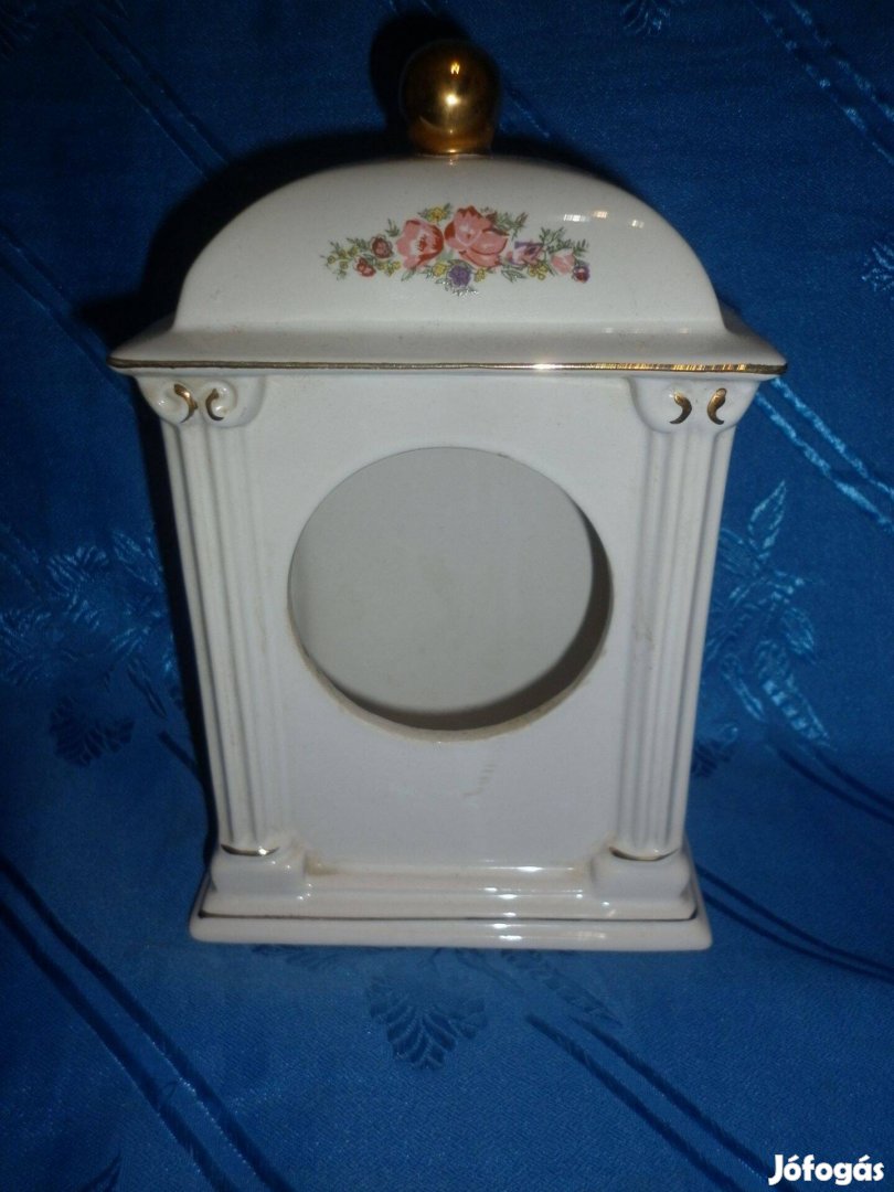 díszes porcelán kandalló óra tok, mérete 20cm magas, 13,5cm széles, 7,3cm átmérő luk a szerkezetnek