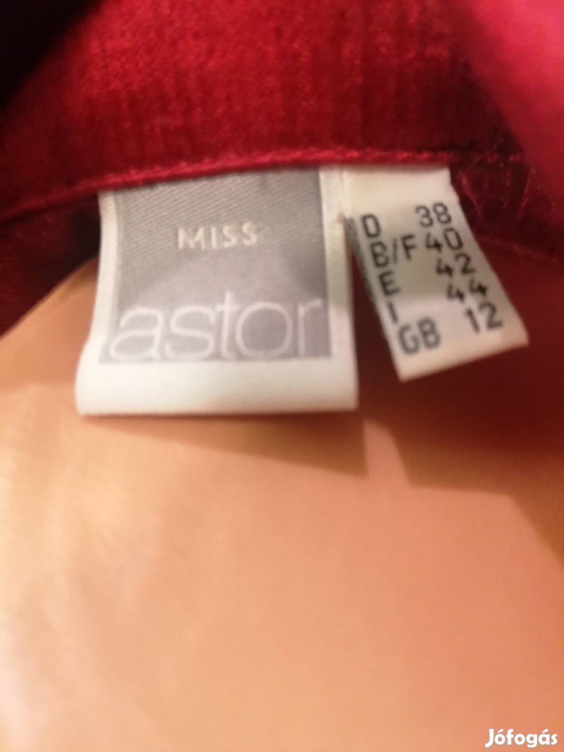 Miss Astor márkájú, anyagában gyűrt bordó selyemblúz, 38-as méret. Klasszikus ingblúz-fazon oldal sliccelt.