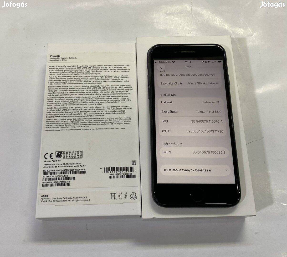Dobozukkal Kártyafüggetlen Iphone se3 2022 64GB,81% Akksi,gyári!