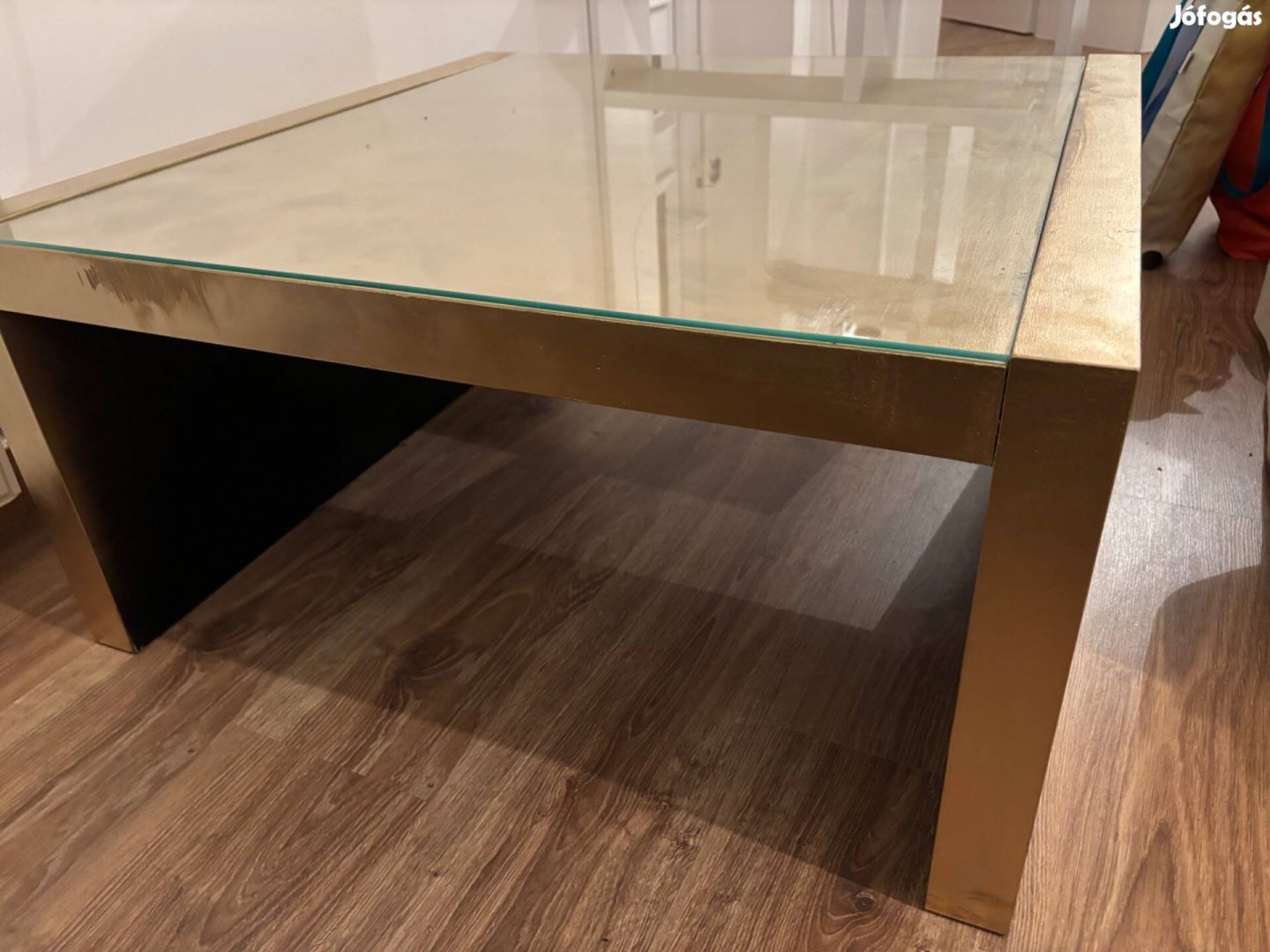 Eladó ez a dohányzó asztal. Aranyra fújt. Üveglappal a tetején. Picit mázgás a festés felül.