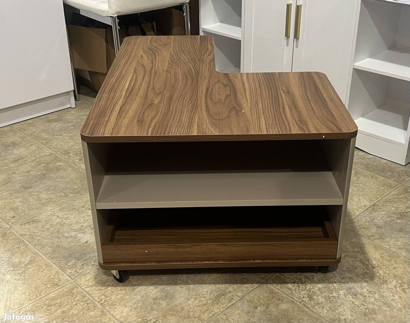 Sarok, gurulós dohányzó asztal, 1 fiókkal, alsó tálcával
