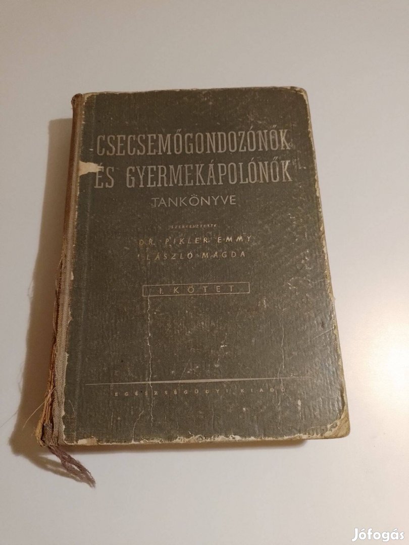 Eladó Dr. Pikler Emmi-László Magda: Csecsemőgondozónők és gyermekápolónők tankönyve című használt állapotú 1953-ban megjelent könyve. A könyv gerince elszakadt, a könyvben több ceruzás aláhúzás van, az első lapja elszakadt. Korához képest jó állapotú.
