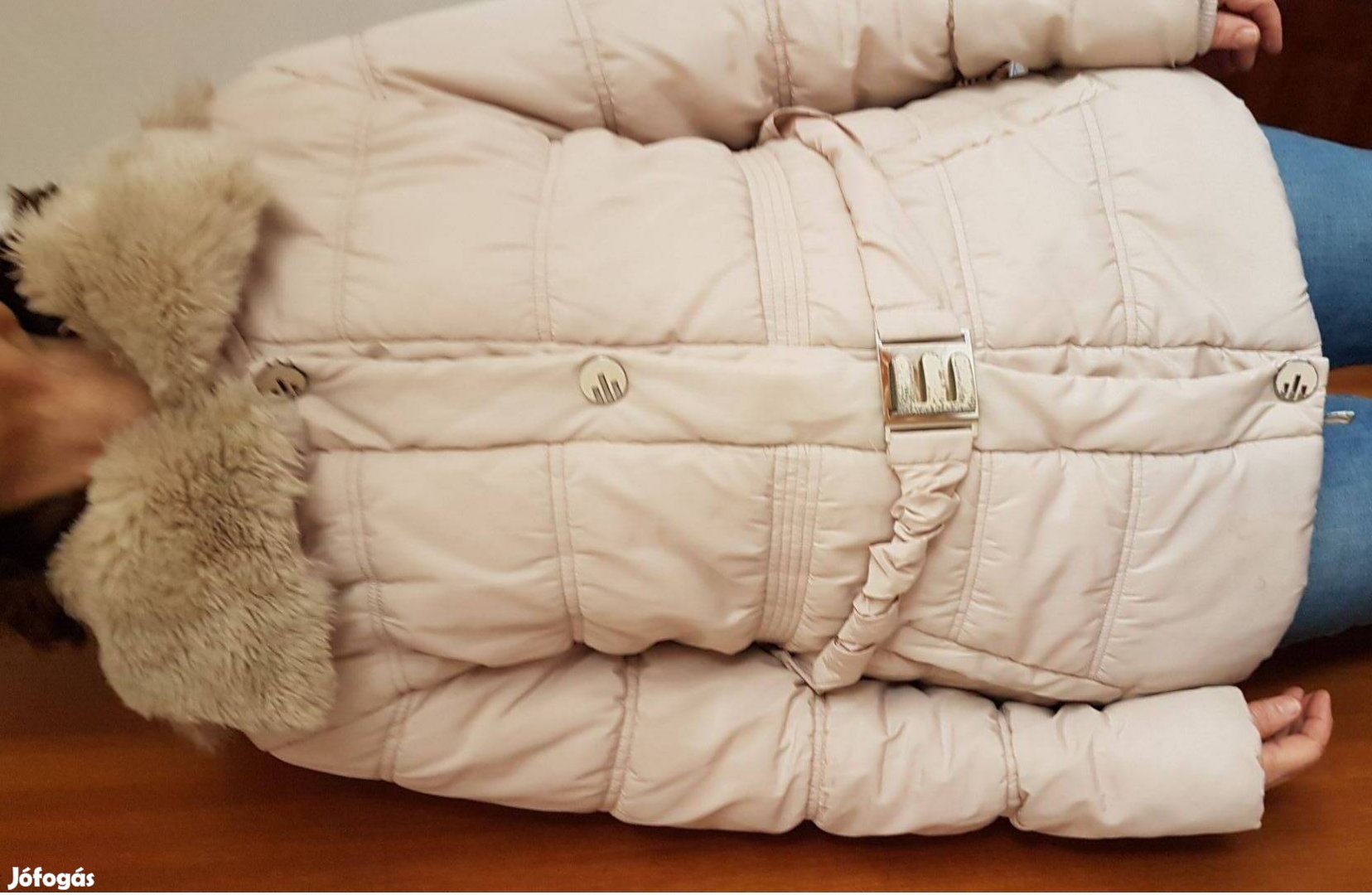 M-es kapucnis drapp színű női télikabát 2000 Ft-ért eladó.