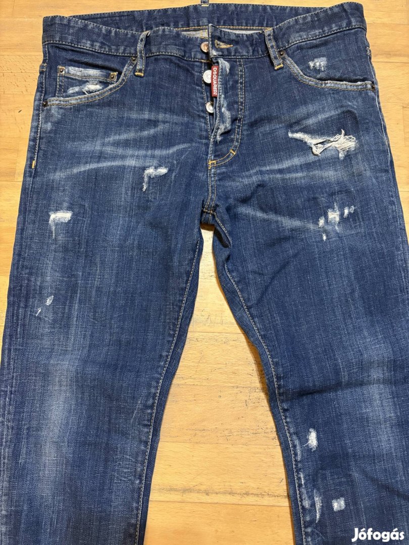 Dsquared2 férfi farmer, 50-es, hosszúszárú, hibátlan, keveset hordott, cimkét kivágták, a képen látható. Külső szárhossz 95 cm, belső szárhossz 71 cm, dereka 42 cm. 105.000,-Ft
