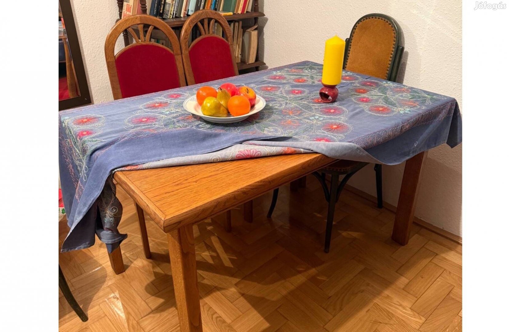 Ebédlőasztal, 4 piros bársonyszékkel 06húsz9436613