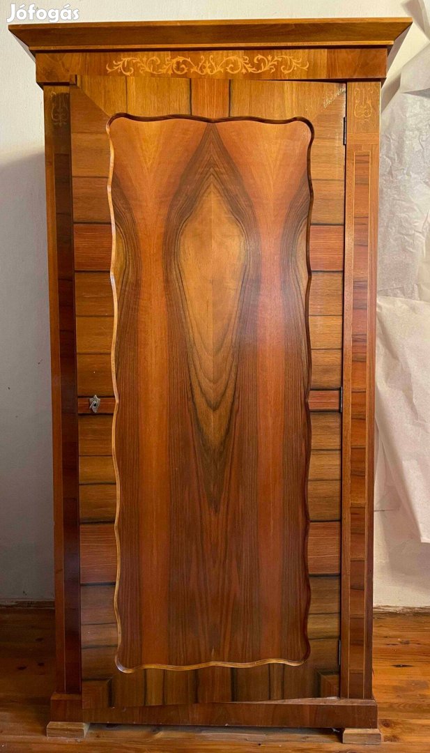Kitűnő állapotban lévő tölgyfa borítású egyajtós, akasztós ruhásszekrény. A Kecskeméti Asztalos Szövetkezet gyártotta a '80-as években.
