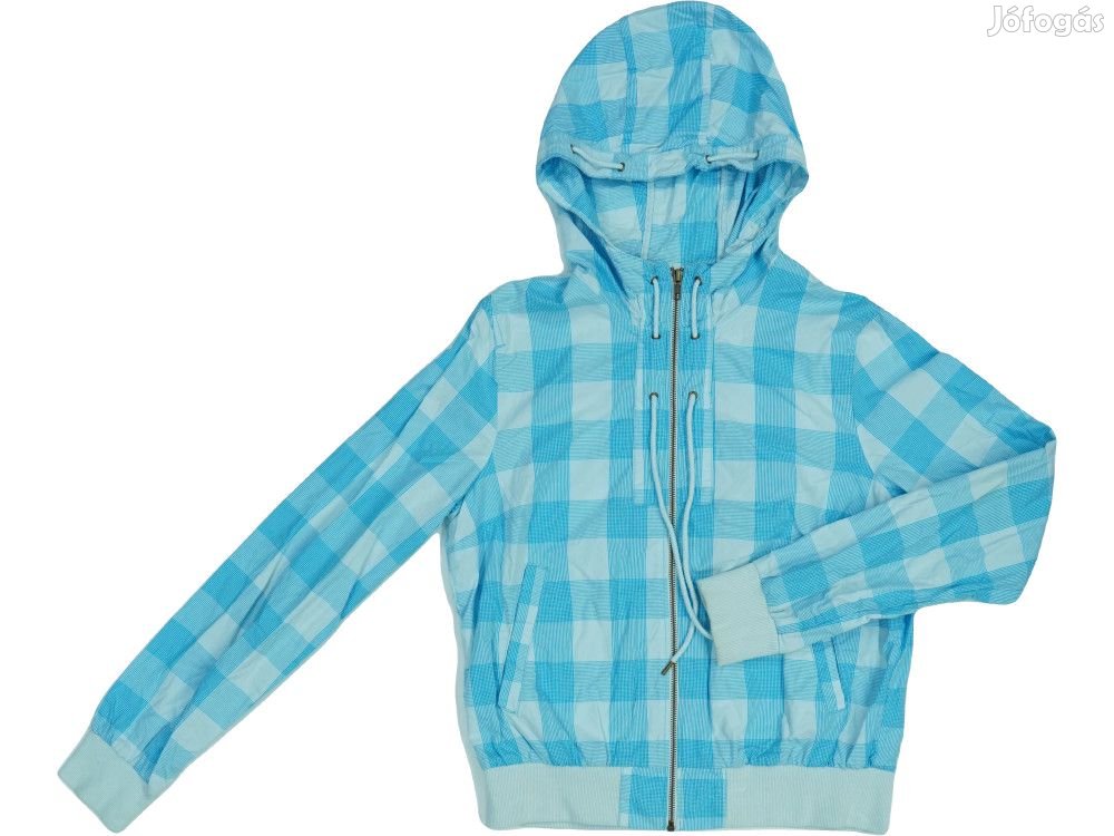 Kapucnis, bélés nélküli, kockás anyagú, kötött passzés, zippes, vékony pamutvászon dzseki rejtett zsebekkel, behúzható kapucnival