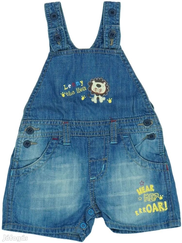 Minta: Feliratos, Oroszlán mintás; Jellemzők: 2-állásban állítható vállpánt, Gombos, Lába között patentos, Övtartóval, Pántos vállú, Zsebes/Oldalzsebes