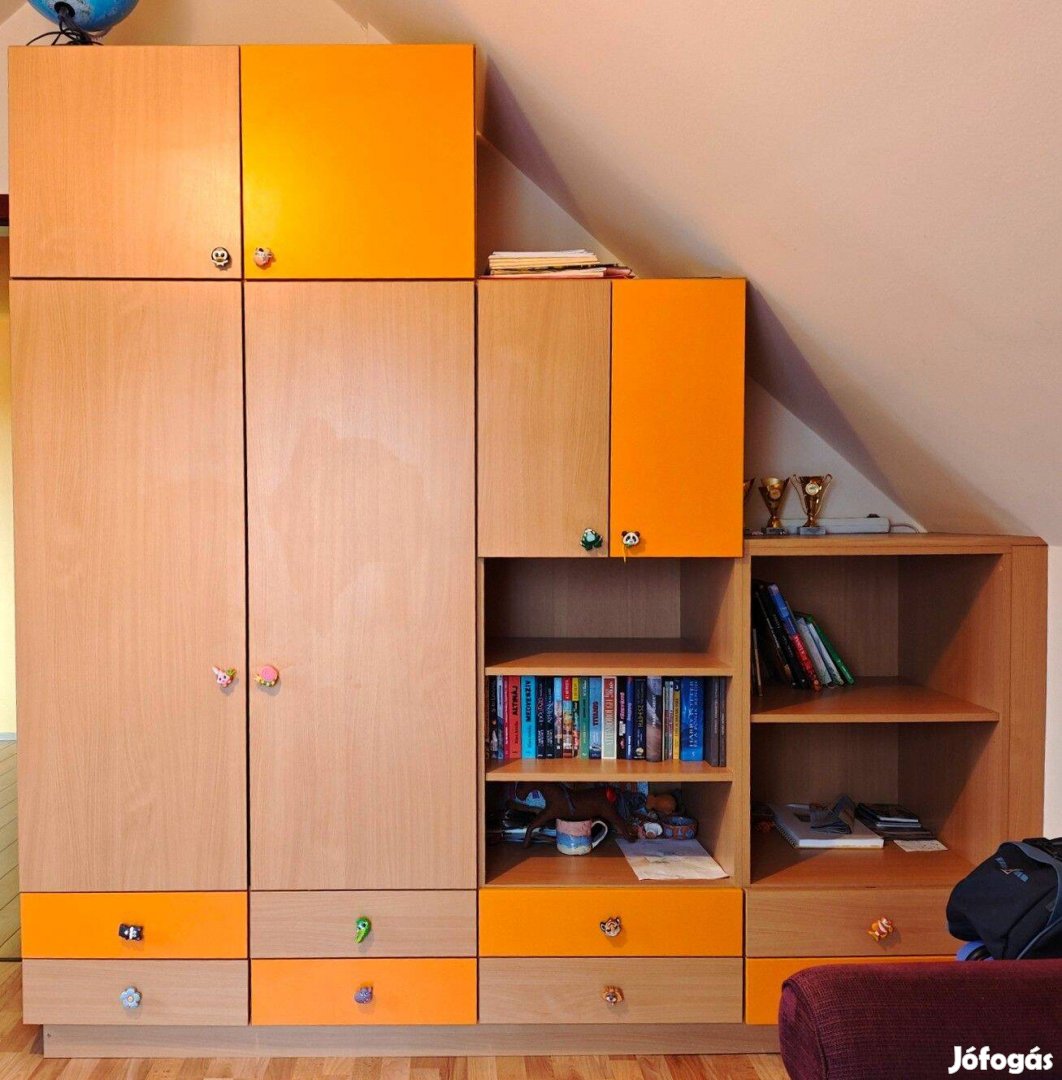 Eladó egy megkímélt állapotú, egyedi tervezésű, 3 különálló elemből álló moduláris szekrénysor. Kifejezetten tetőtéri beépítéshez, a ferde falfelületek maximális kihasználására készült.