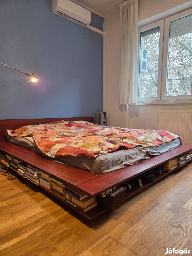 Egyedi tervezésű, bútoros által készült, japán stílusú franciaágy ágyráccsal, matrac nélkül eladó. Az ágyba 160×200 cm-es matrac való.